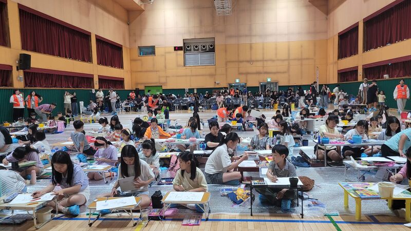 [천안시 백석동 주민자치회가 제5회 어린이 미술대회를 진행하고 있다.]