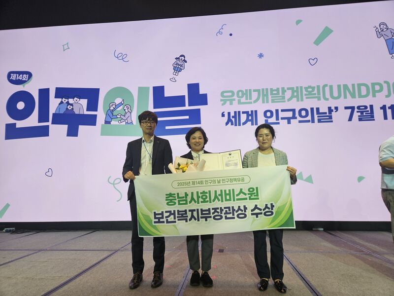충남사회서비스원(원장 김영옥)은 2025년 제14회 인구의날을 맞아 인구정책 유공자로 선정되어, 보건복지부장관상을 수상하였다. 이번 수상은 충남도의 풀케어 돌봄 실현을 위한 아동돌봄통합플랫폼 ‘아이충남’ 구축과 90명의 아동돌봄활동가 양성·파견으로 아침돌봄 등 틈새돌봄 지원, 도-시군-민간 네트워크를 구축하여 초등돌봄 활성화로 충남도의 인구 정책에 적극 기여한 공로를 인정받은 결과이다.