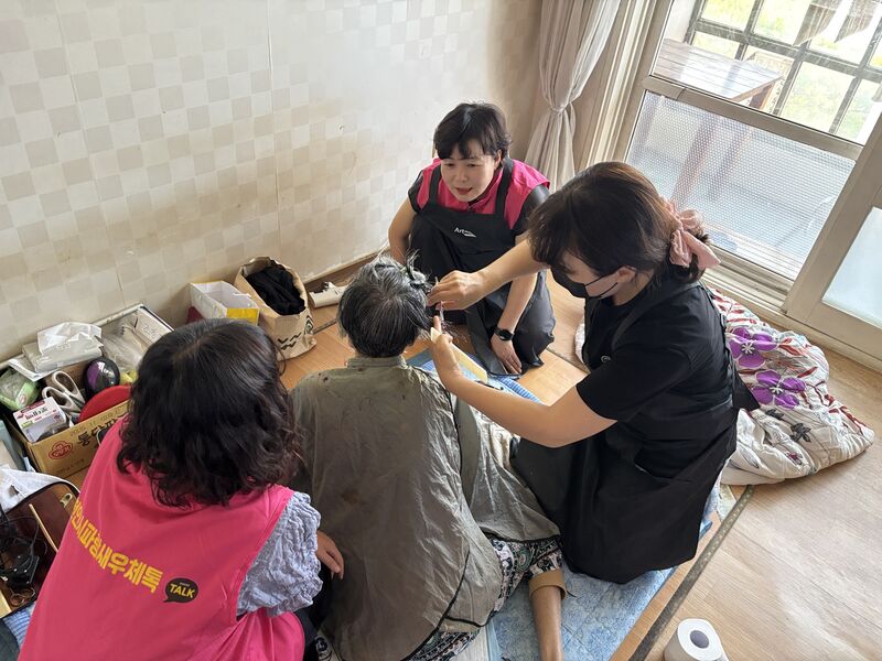 정 씨는 거동이 불편한 양 씨의 집을 찾아가 머리를 손질하며 단순한 봉사를 넘어 마음을 전하는 시간을 가졌다.