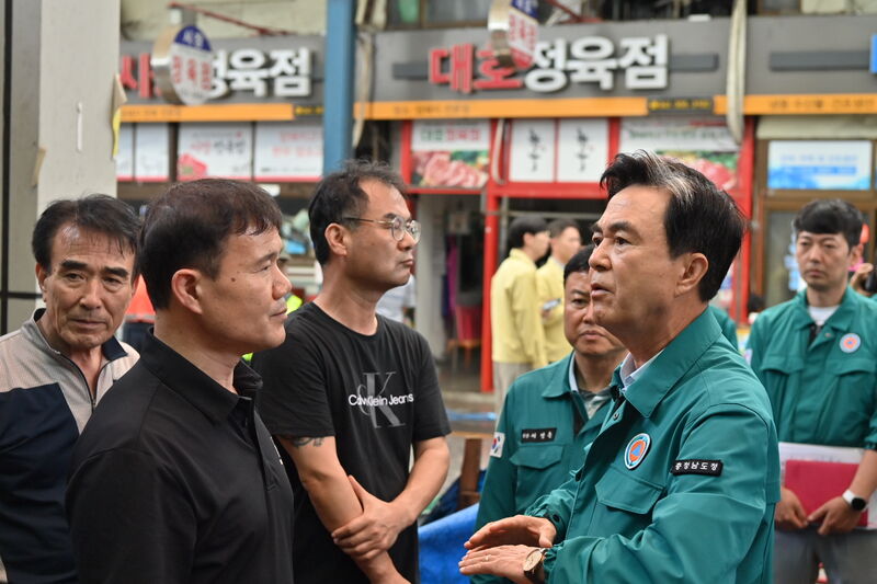 어시장을 찾은 자리에서 김 지사는 시장을 비롯한 당진 지역 피해 상황을 들었다.