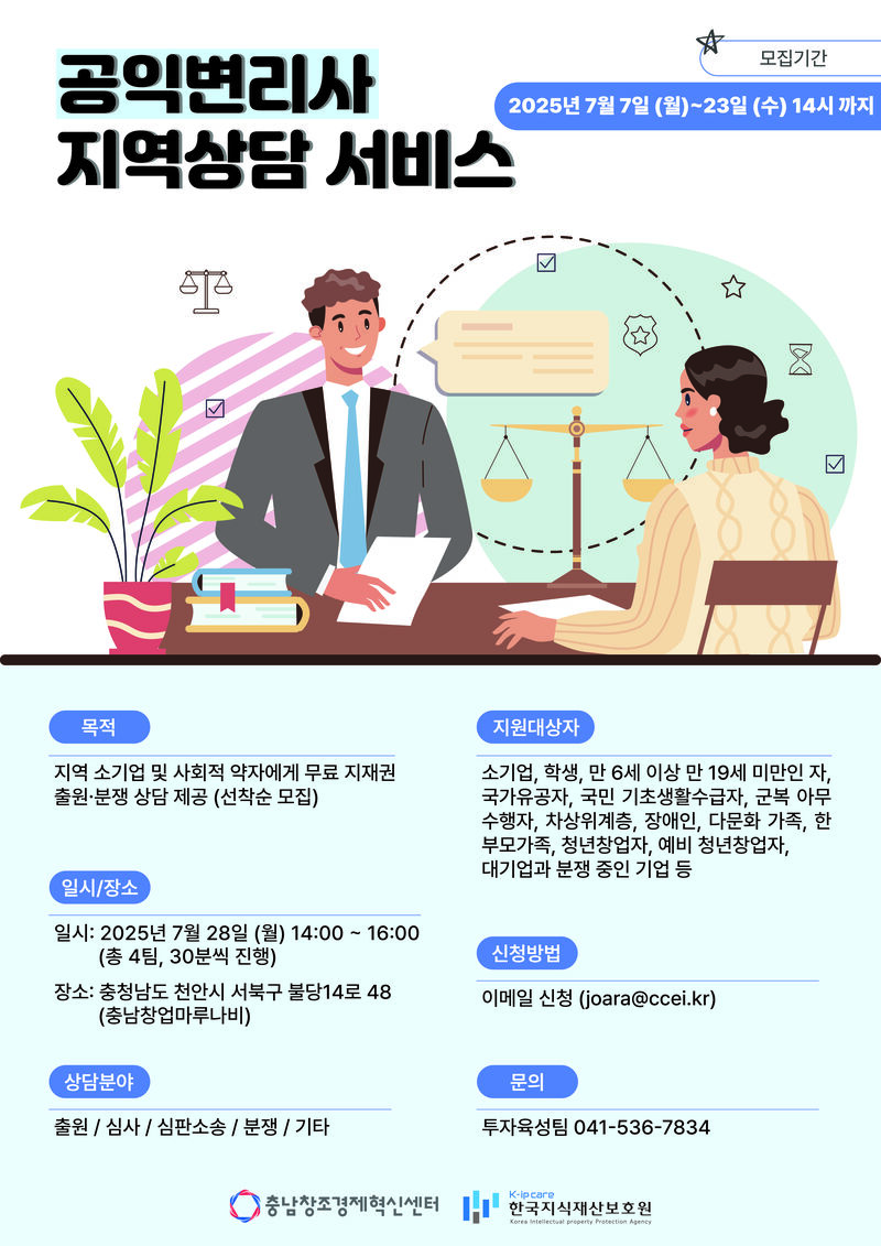 참가 신청은 오는 7월 28일(월) 낮 12시까지 구글폼(https://buly.kr/1GJun0W)을 통해 가능하며, 자세한 모집 공고와 신청 방법은 충남창조경제혁신센터 공식 홈페이지에서 확인할 수 있다.