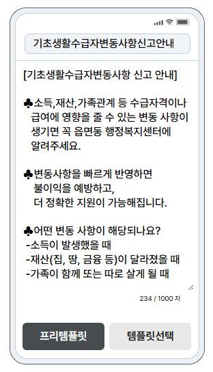 알림톡 서비스는 수급자가 소득 및 재산 변동사항을 적시에 신고하지 않아 발생할 수 있는 부정수급을 방지하기 위해 마련됐다.