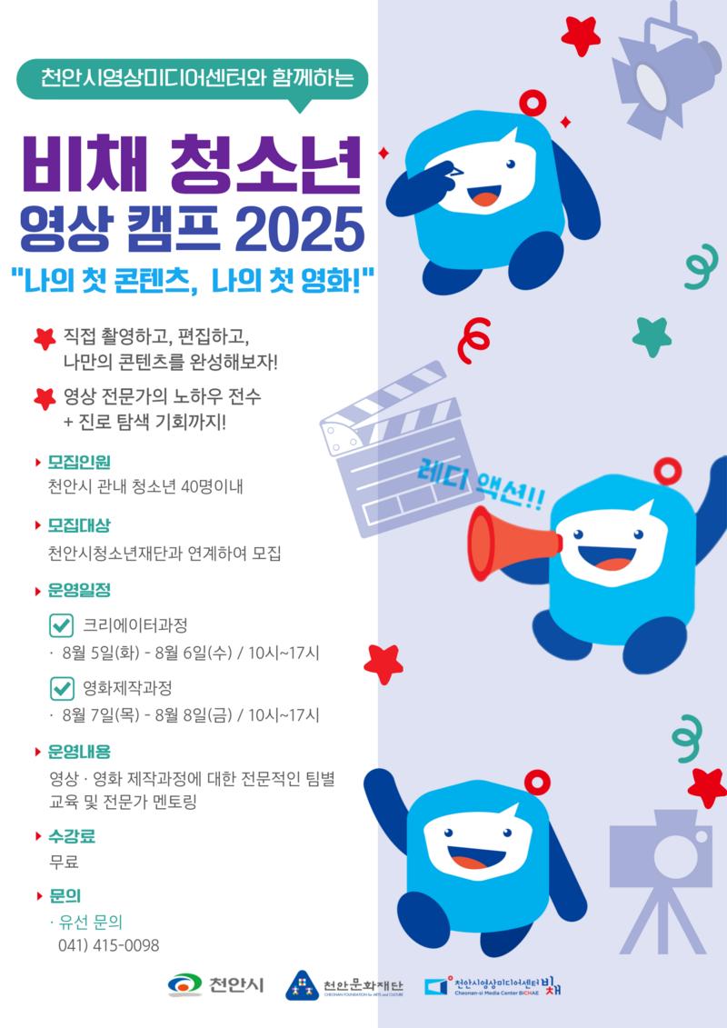 [천안시영상미디어센터 ‘비채 청소년 영상 캠프 2025’ 홍보문.]