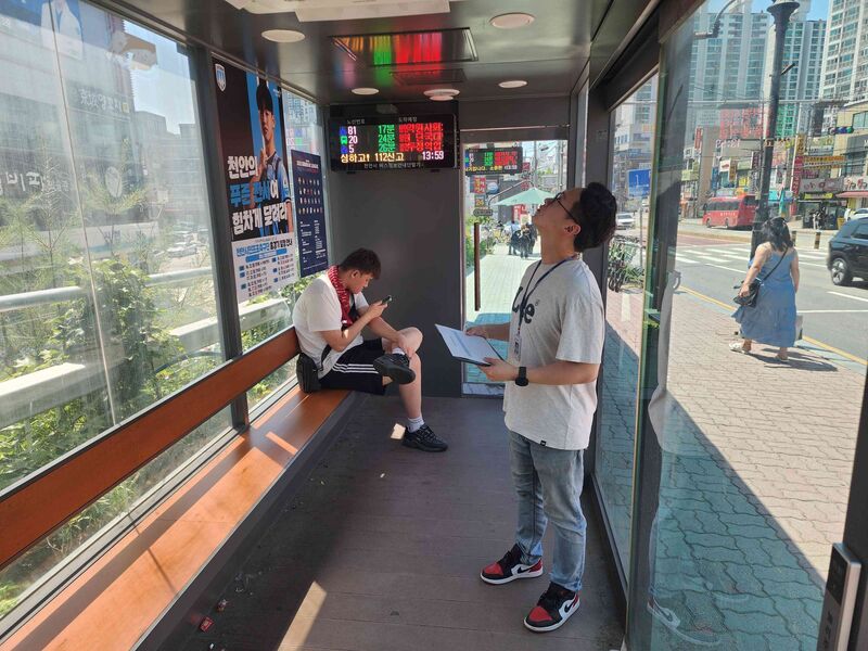[천안시가 스마트 승강장에 대해 정기점검을 하고 있다.]