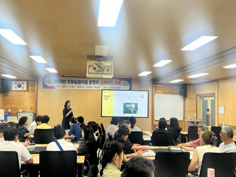 충남도 농업기술원은 치유농업시설 예비 운영자의 전문성 강화를 위해 7월 24-25일, 8월 7-8일 총 26시간에 걸쳐 ‘2025 치유농업시설 운영자 심화과정 이론교육’을 운영했다고 밝혔다.