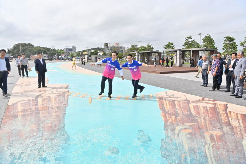 김 지사가 이어 찾은 남당항은 새조개, 대하 등 서해의 맛을 선사하던 곳에서, 2023년 해양분수공원과 네트어드벤처를 추가하며 멋과 즐거움을 더한 공간으로 탈바꿈했다.