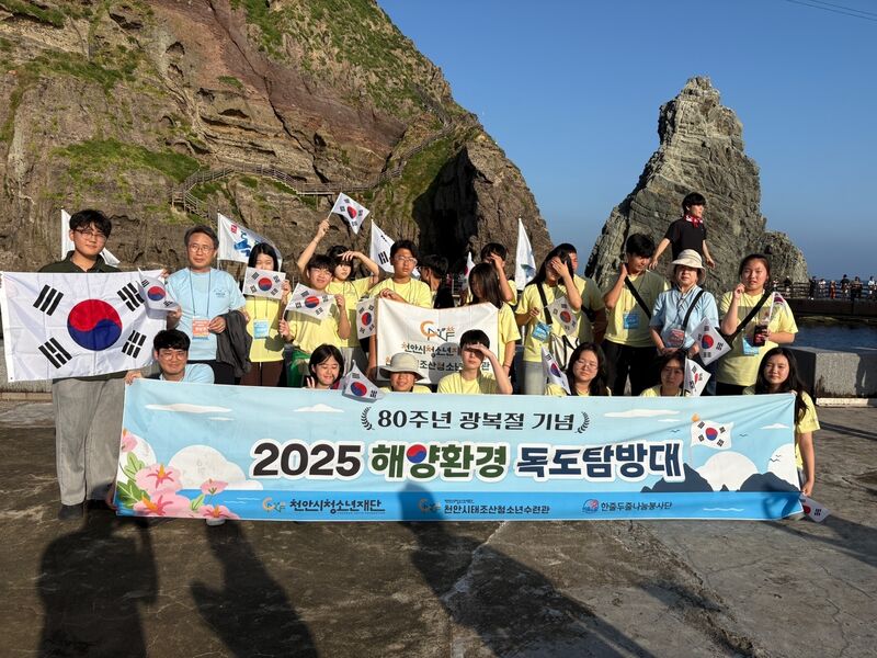 (재)천안시청소년재단 천안시태조산청소년수련관은 ‘2025 해양환경 독도탐방대’가 광복 80주년을 맞아 독도에 입도했다고 18일 밝혔다.