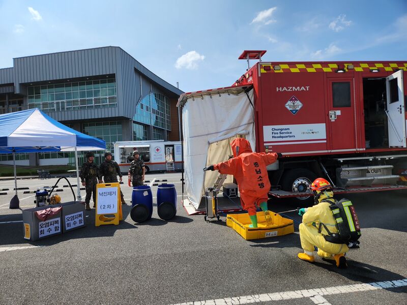 이번 훈련은 을지훈련 기간 중 진행했으며, 핵 폭격 발생 상황을 가정해 피폭자 제독 등 사후관리 절차를 중심으로 대원들의 대테러 대응 능력을 높이는 데 초점을 맞췄다.