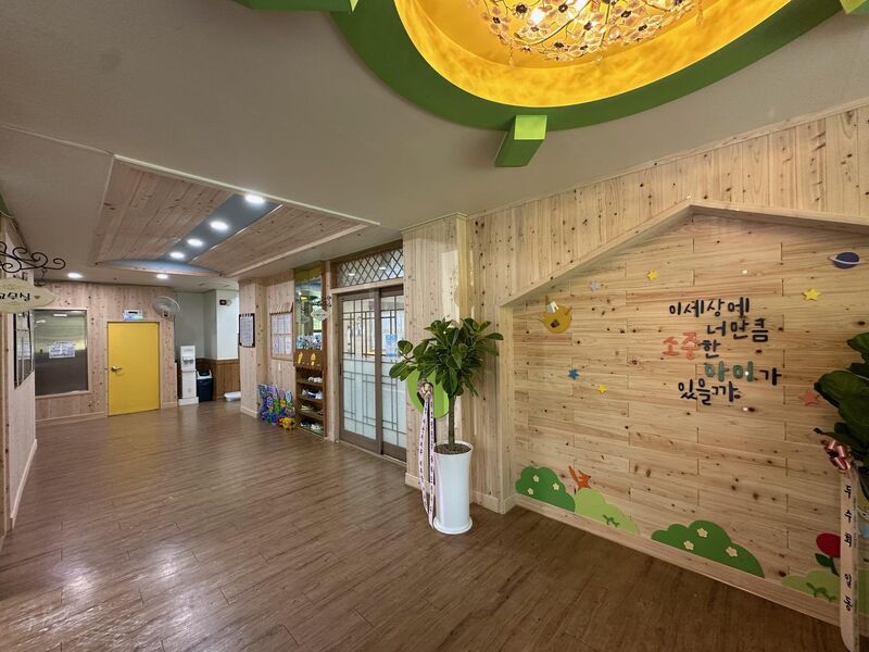 [어린이놀이시설 목조화사업을 완료한 자연어린이집 실내.]