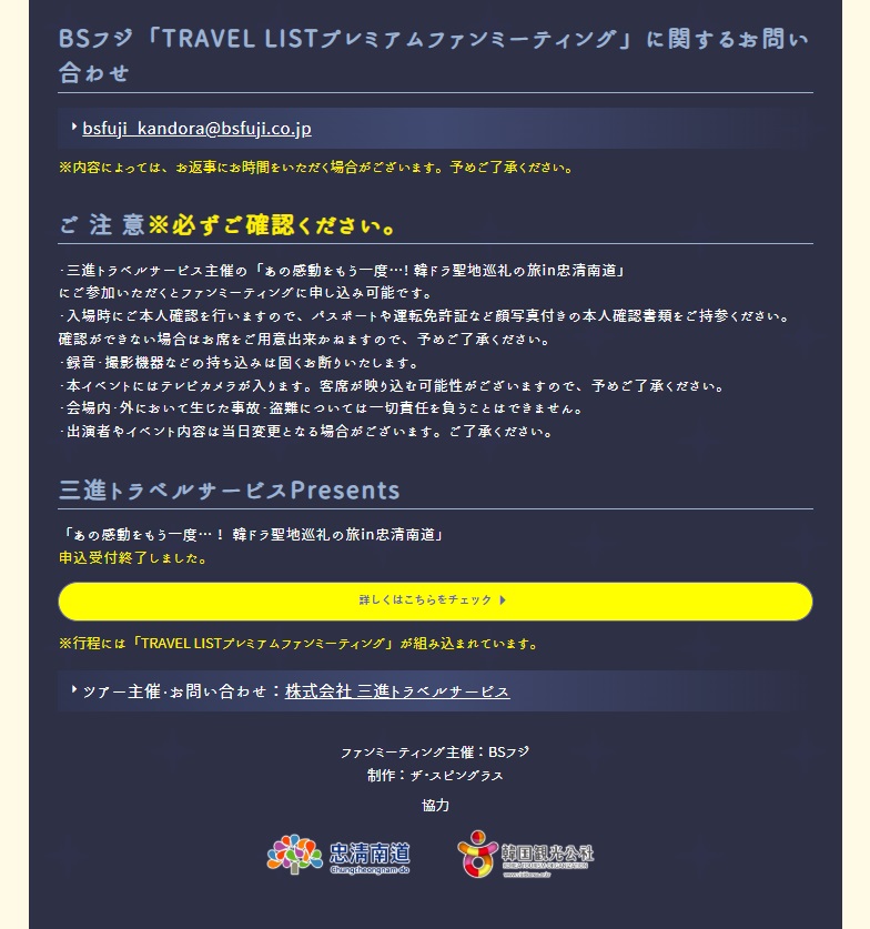 방송에는 일본 현지 배우, 아나운서 등 유명 연예인 3명이 사회자로 출연하고 70여 명의 팬들이 참여하는 대규모 팸투어로 진행되며, 충남 곳곳의 매력을 생생하게 전달할 예정이다.
