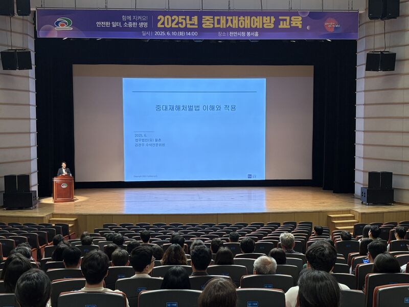 천안시는 22일 중대산업재해 예방과 안전문화 확산을 위해 ‘중대산업재해 예방교육’을 실시했다.