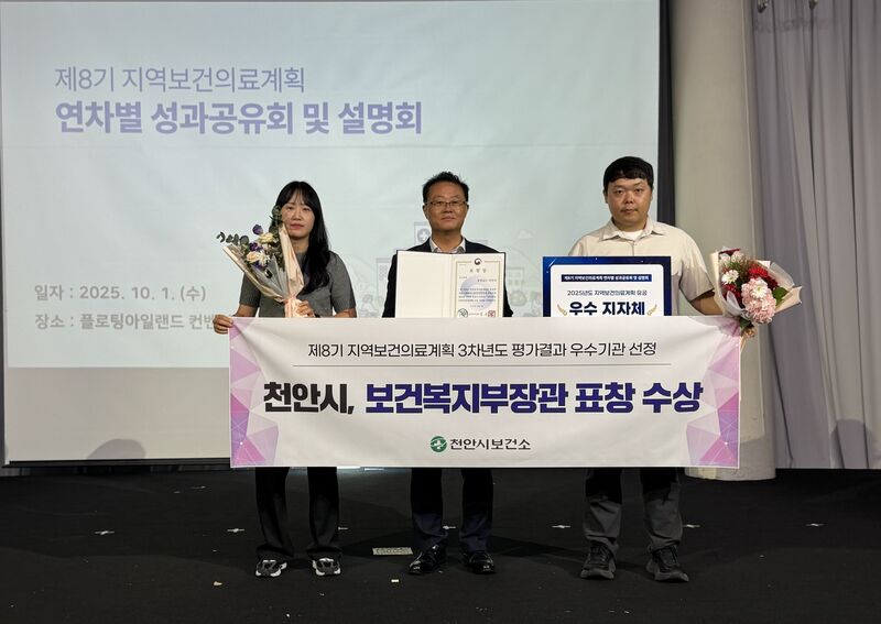 천안시가 1일 제8기 지역보건의료계획 평가 우수기관으로 선정돼 보건복지부 장관상을 수상했다.