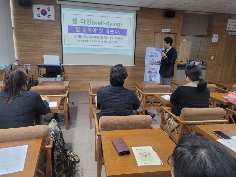 행복키움지원단은 이날 웰다잉 전문 강사의 안내에 따라 죽음의 의미를 되새기는 강연을 듣고, 유언장 작성과 입관 체험을 통해 스스로의 삶을 돌아보는 시간을 가졌다.