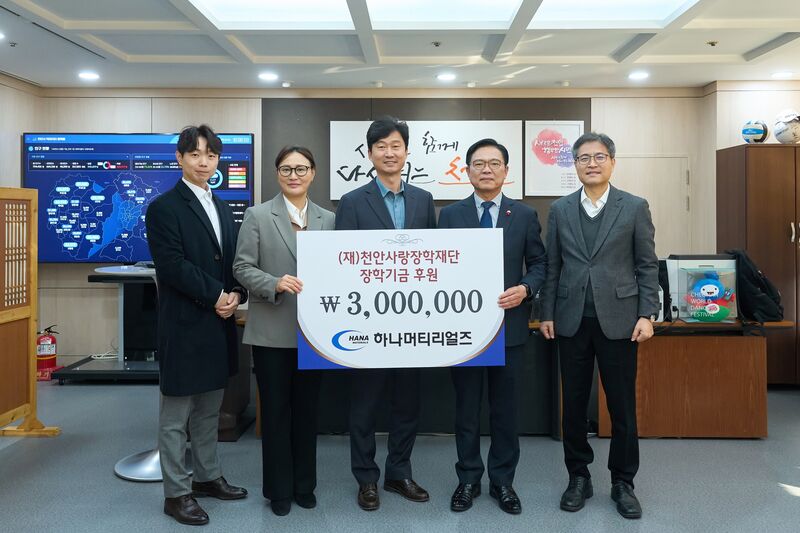 김영석 하나머티리얼즈 상무는 “천안의 미래를 이끌어갈 인재들에게 조금이나마 도움이 되기를 바라며 앞으로도 지역사회와 함께 나눔을 실천하는 기업이 되도록 노력하겠다”고 말했다.