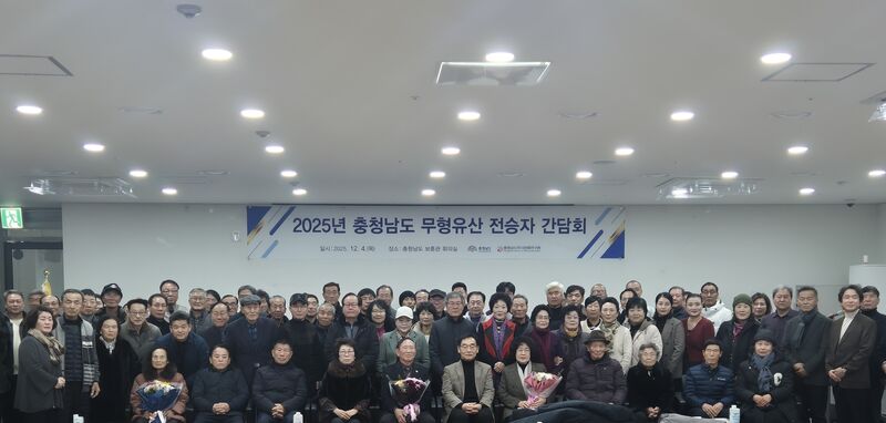 충남역사문화연구원(원장 장기승)은 4일 충청남도 보훈관(홍성군 홍북읍 홍예공원로 65)에서 2025년 충청남도 무형유산 전승자 간담회(이하 간담회)를 개최하였다. 이번 간담회는 충청남도 지정 무형유산의 체계적인 전승 기반을 마련하고, 현장의 다양한 의견을 수렴하기 위해 마련되었다.