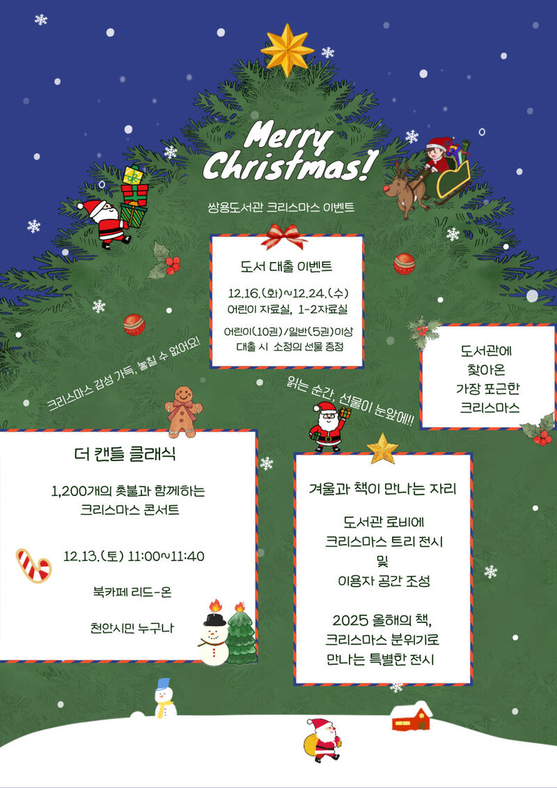 천안시 쌍용도서관은 크리스마스를 맞아 특별행사를 운영한다고 12일 밝혔다.