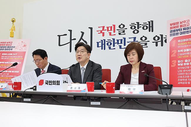 국민의힘 권성동 원내대표는 23일 오전 서울 여의도 국회 원내대표실에서 ‘결혼부터 육아까지 든든한 대한민국’을 만들기 위한 공약을 발표했다. 이번 공약은 결혼·출산·육아 전 과정의 부담을 줄여 저출산 문제에 적극 대응하겠다는 의지를 담고 있다.