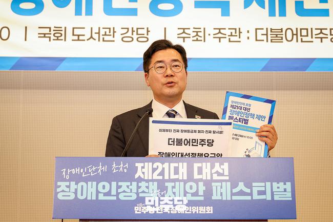 더불어민주당 박찬대 당대표 직무대행 겸 원내대표는 23일 오전 국회도서관 대강당에서 열린 ‘제21대 대선 장애인 정책제안 페스티벌’에 참석해, 장애인 권리 보장을 위한 정책 추진 의지를 밝혔다.