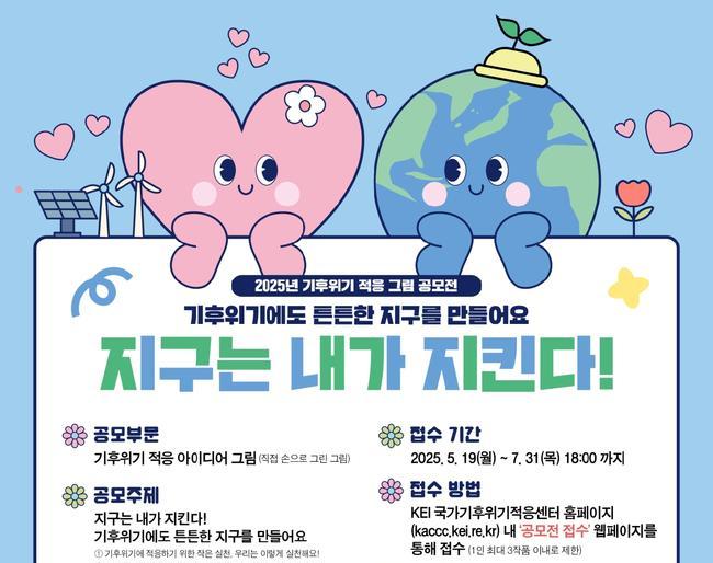 환경부와 한국환경연구원이 미래세대의 기후위기 대응 인식을 높이기 위해 전국의 유치부 및 초등학생을 대상으로 `2025년 기후위기 적응 그림 공모전`을 개최한다.