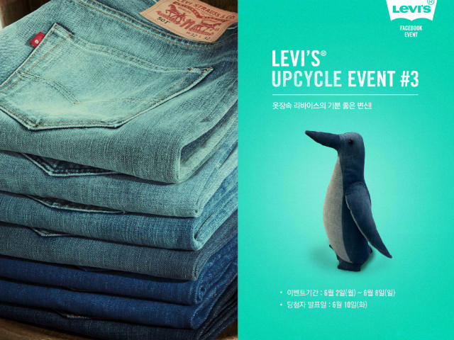 리바이스코리아 페이스북(https://www.facebook.com/Levis.korea)에서는 아기자기한 데님 소품을 증정하는 업사이클 이벤트도 진행된다. 리바이스코리아 페이스북과 업사이클 이벤트 게시물에 ‘좋아요’를 누른 후, 리바이스와 관련된 내용의 댓글을 남기면 매주 5명을 선정해 당첨자들이 가지고 있는 오래된 리바이스 데님을 전달받아 데님 쿠션, 데님 파우치, 데님 인형 등 인테리어 소품으로 제작해준다.